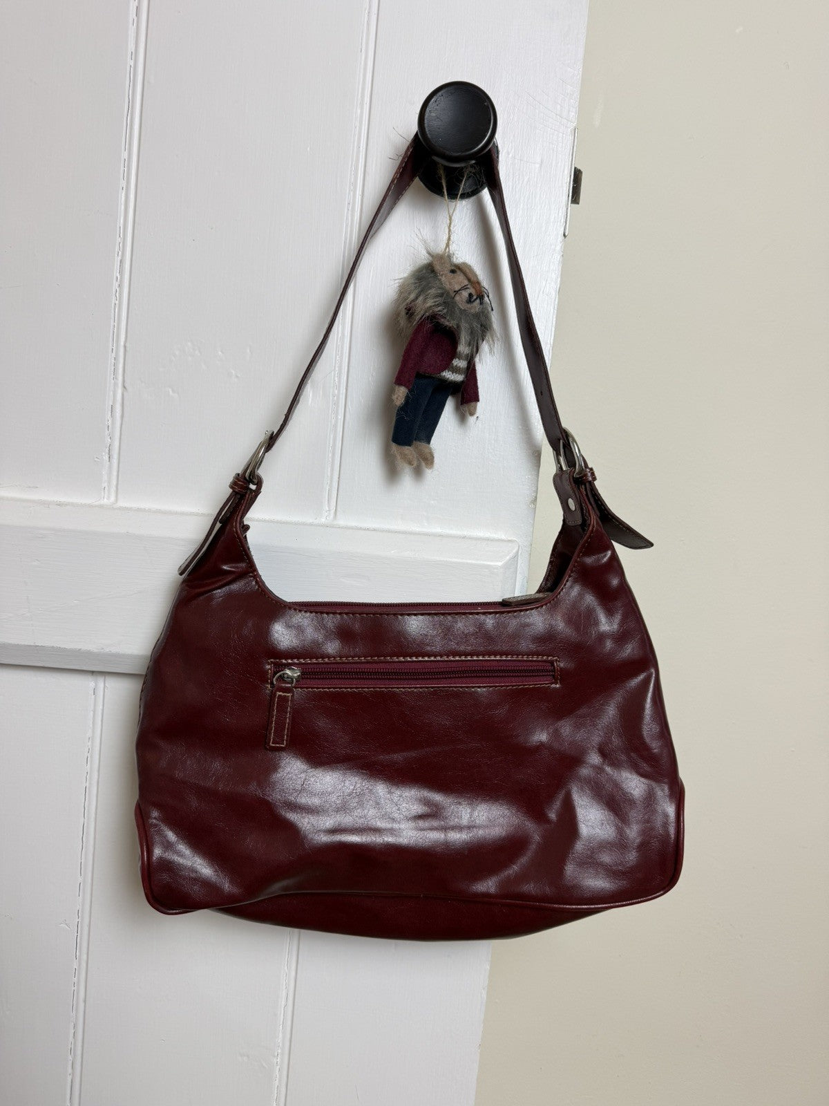Super gorgeous vintage 90s/y2k bag by Agnes Flo. Gorgeous deep burgundy brown colour and great quality. Additional pockets to the front and back and zip fastening main center pocket. Adjustable strap. Perfect for everyday.